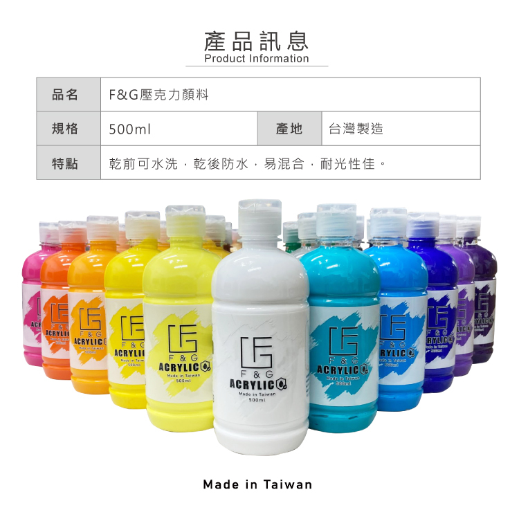 ●乾前可水洗,乾後防水,易混合,耐光性佳。
